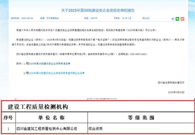 建科院獲全省首個“建設工程質量綜合檢測資質”